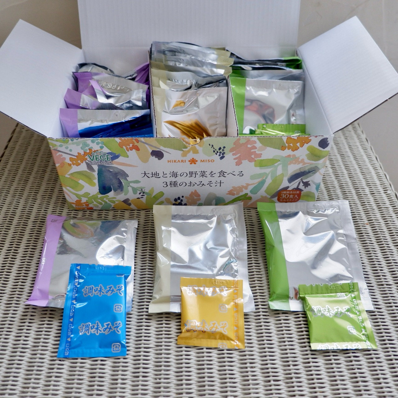 3種類10セットで30食分の味噌汁が入っています。