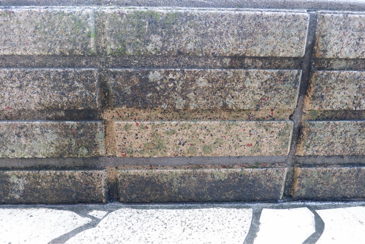 このマークが数年分のブロック塀の汚れに効果がありましたよ!