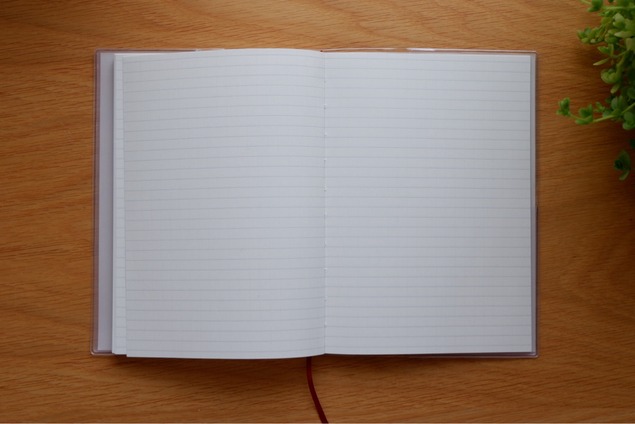 カバーの内側もちょっと収納したい付箋などを挟めますね。