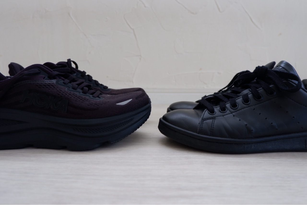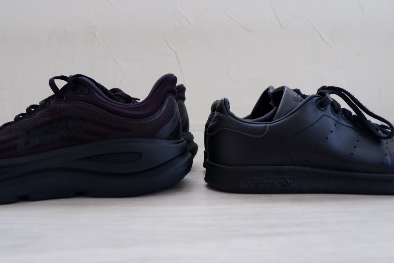 左が、HOKA。右がアディダス。