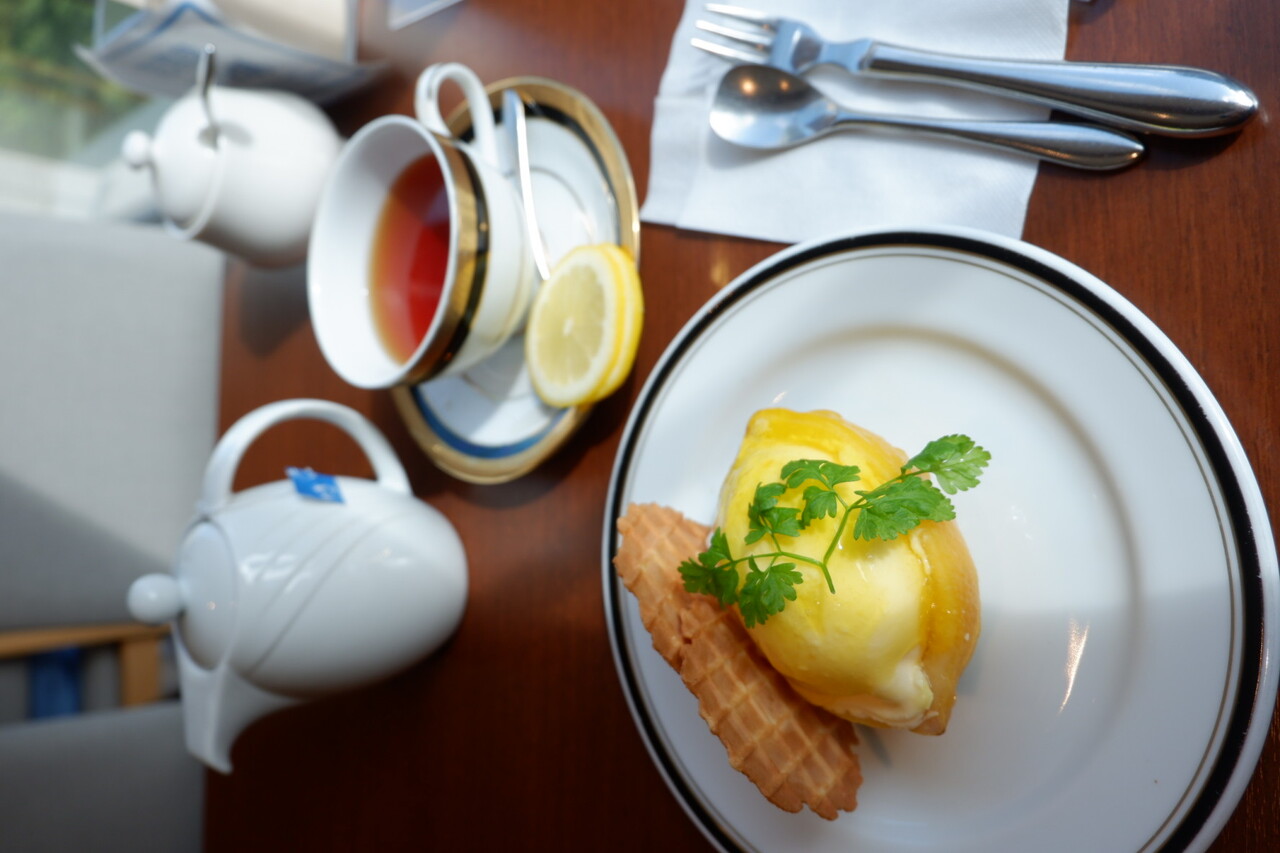 ホットティーにレモンを付けてもらいました。