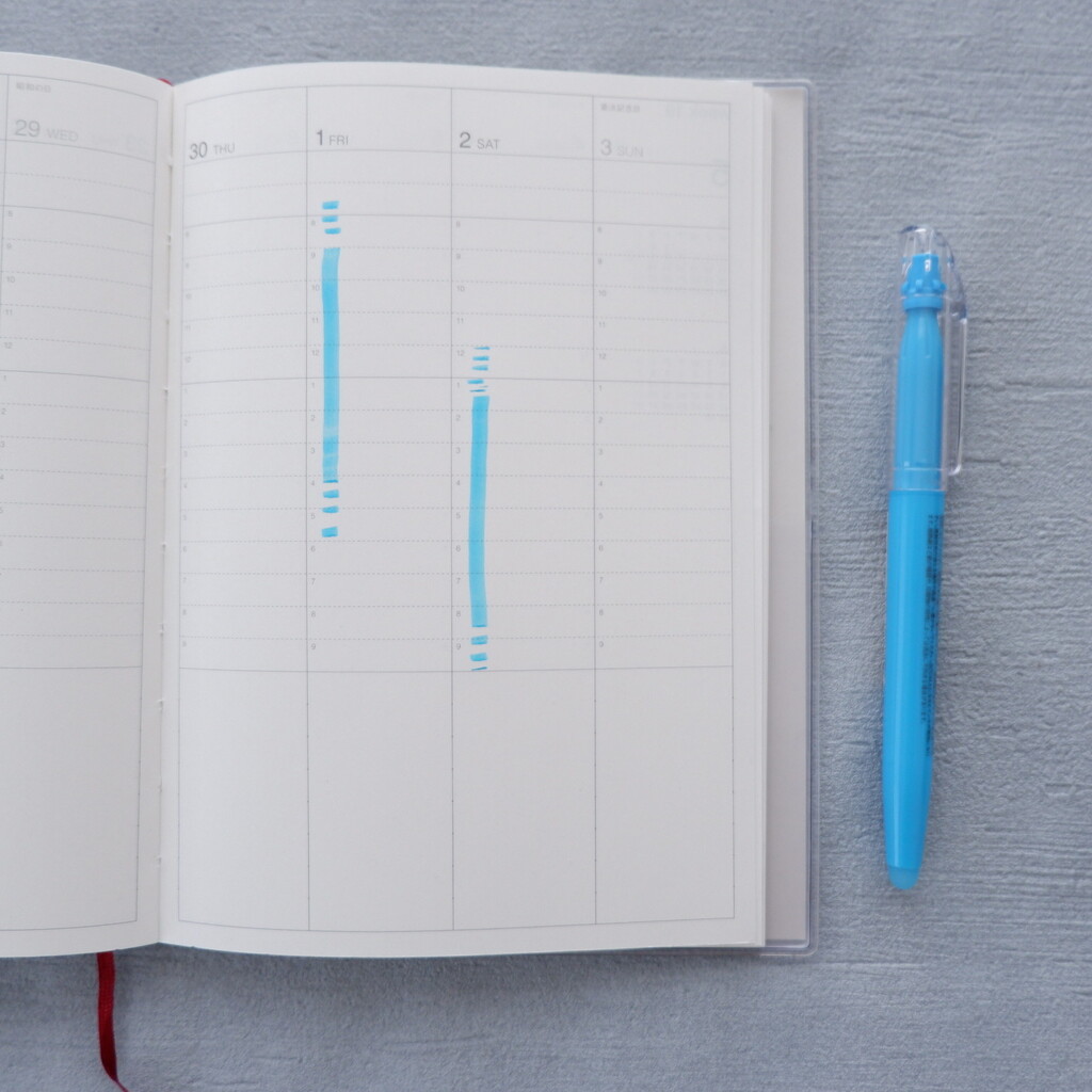 こすって消せる蛍光ペンを使うと