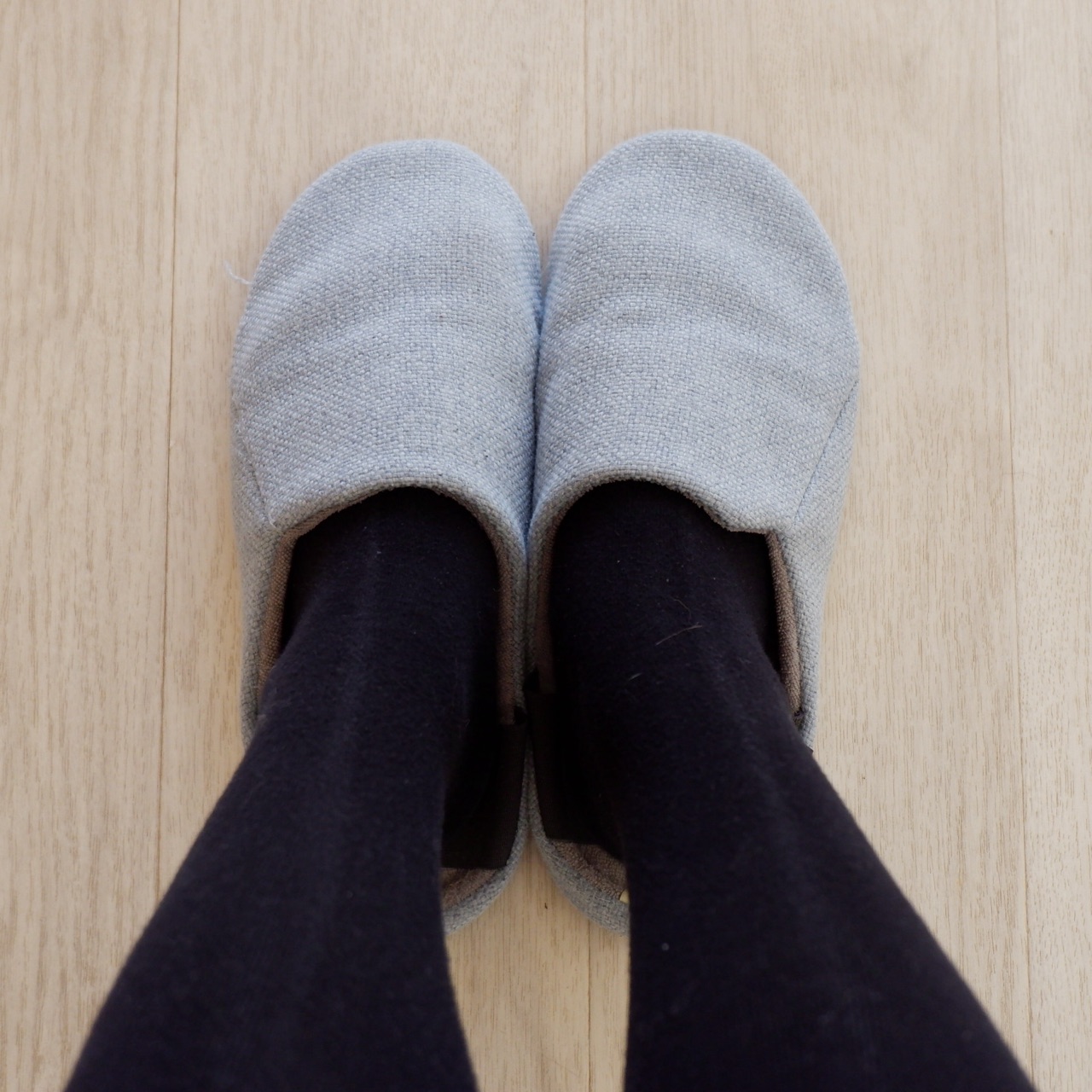 仕事の日は、ハイソックスにスリッパで過ごしています。