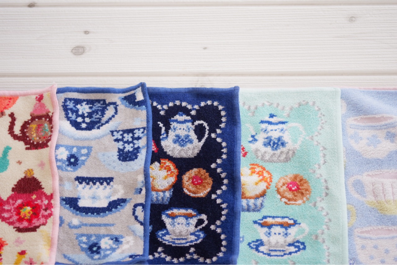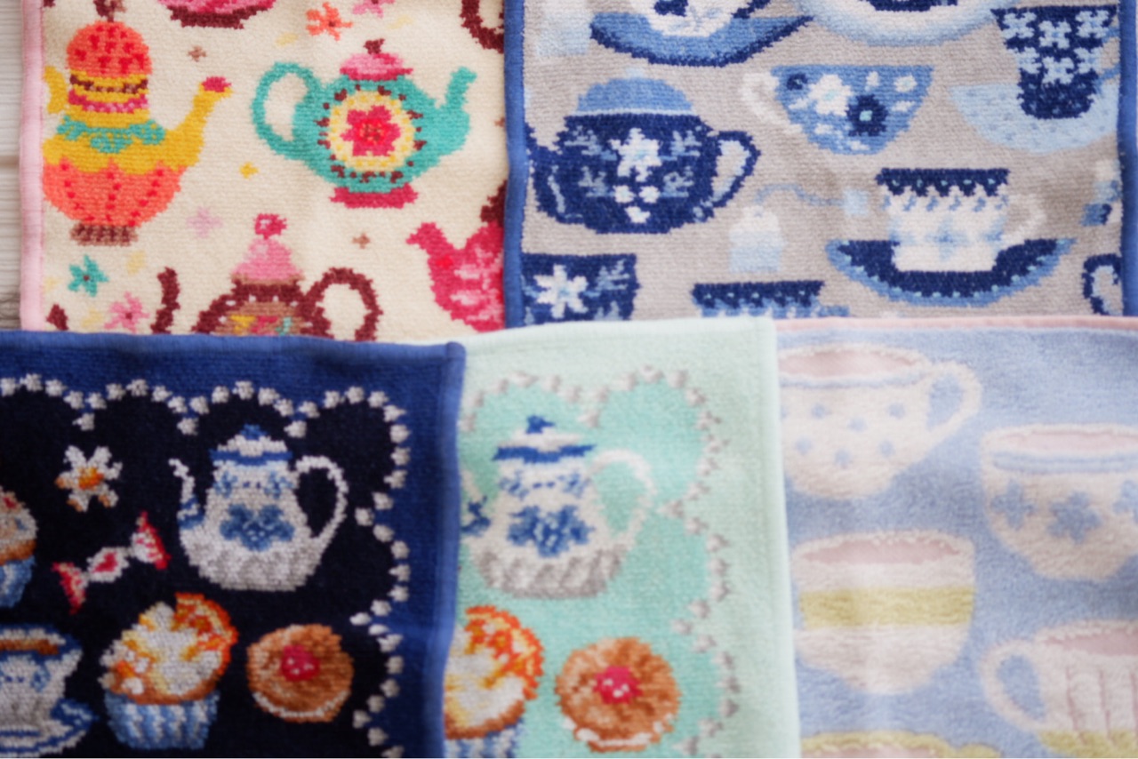 最近、ティーカップやティーポット柄のハンカチが増えてきました。