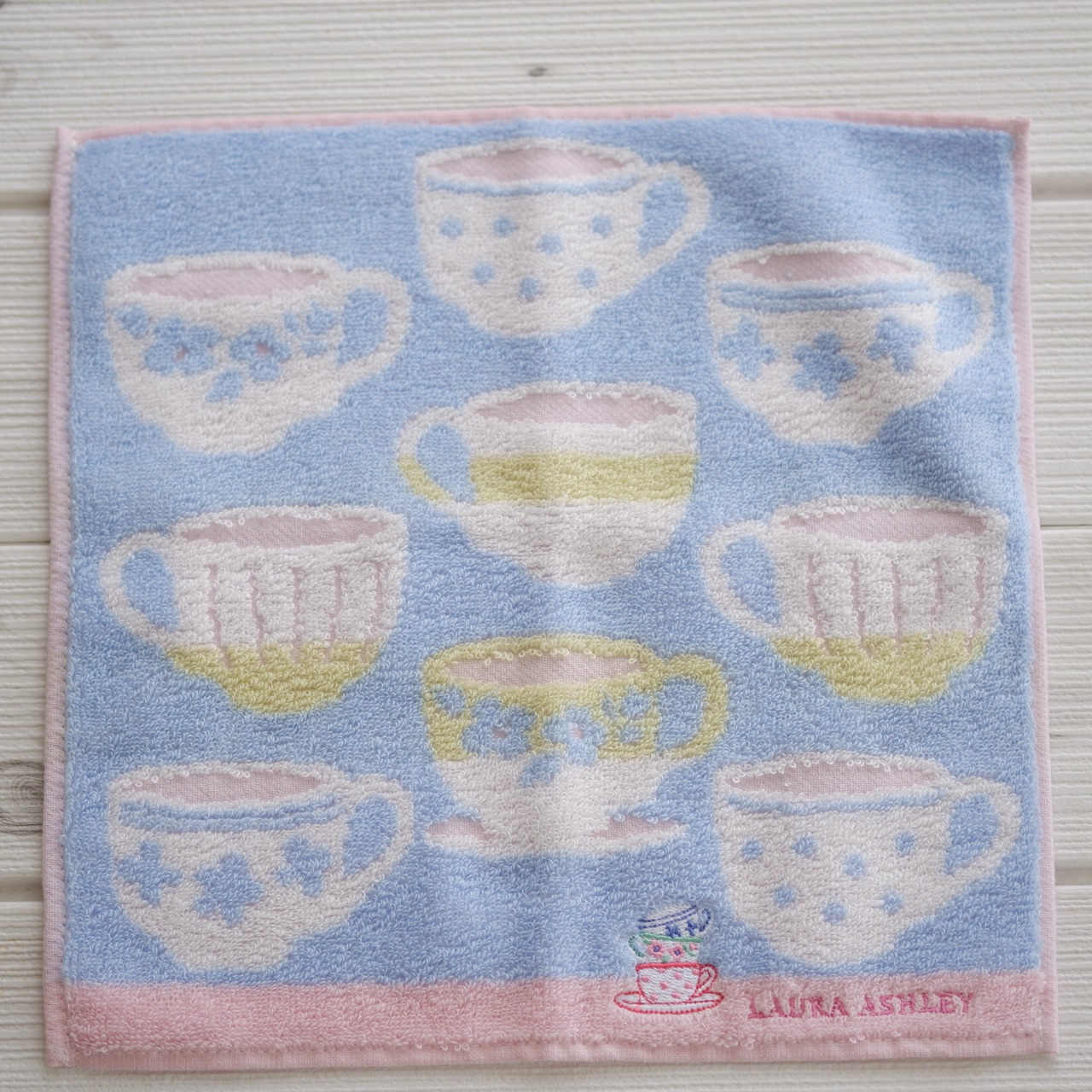 ローラアシュレイのティーカップ柄のタオルハンカチを